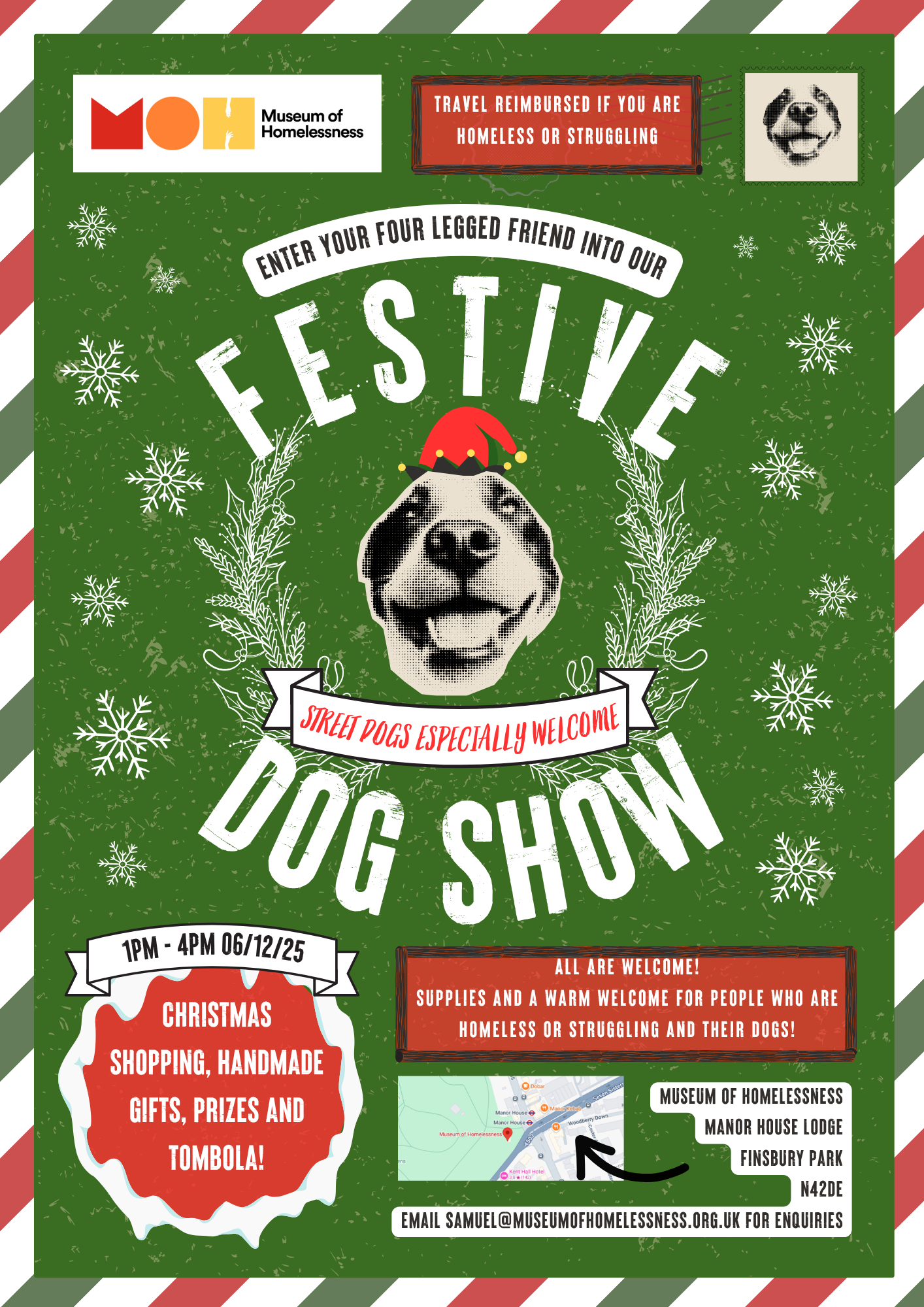 We are holding our SECOND Festive Dog Show as a community celebration of our fur family and to raise funds for MoH winter appeal!