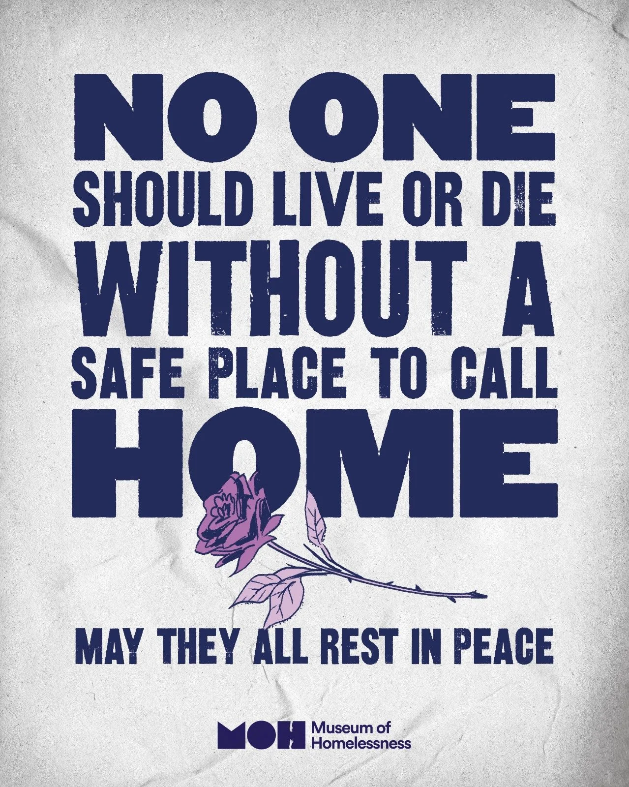 A banner saying No-one should live or die without a safe place to call home - may they all rest in peace. Artist: Matt Bonner.